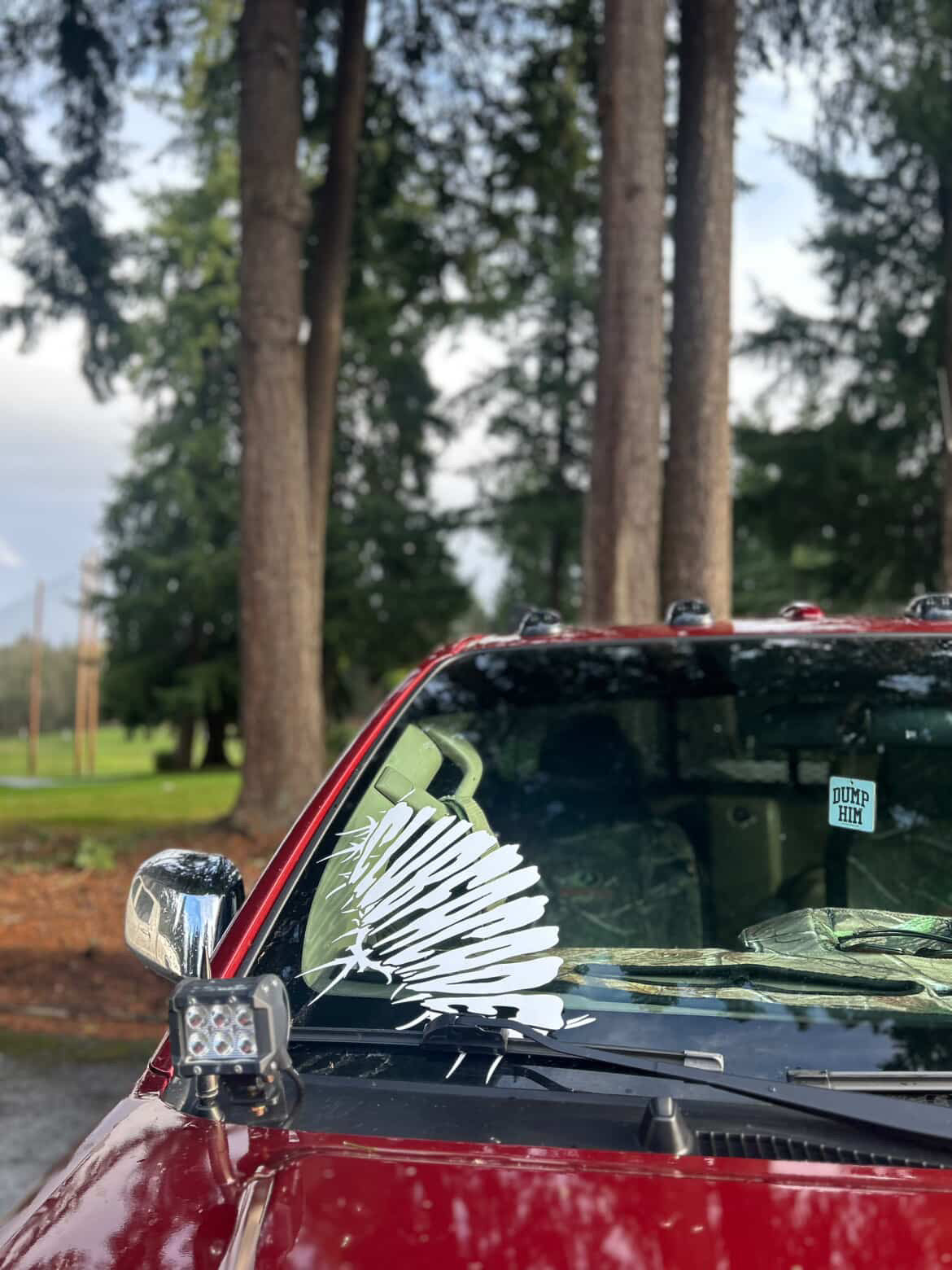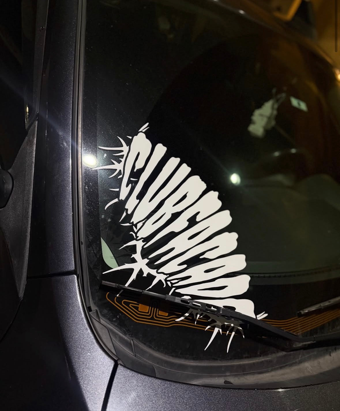 The Yūshi Corner Banner sticker brings authentic edge to your vehicle with bold barbed wire corner design